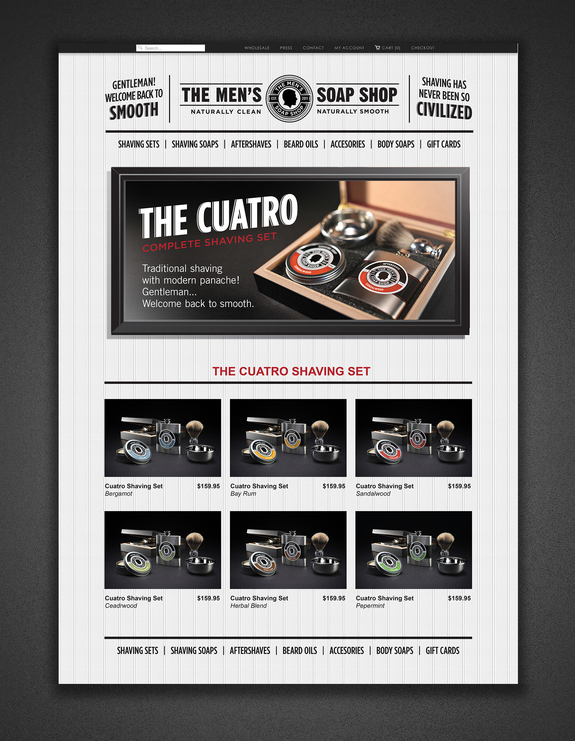 The Men’s Soap Shop redefines men's grooming with all-natural soaps and shaving products. Our integrated brand identity and packaging system catapults the brand into retail and wholesale markets, communicating clean, sophisticated, and masculine qualities. Captivating a rapidly expanding market, we transform grooming into a ritual of refined indulgence.